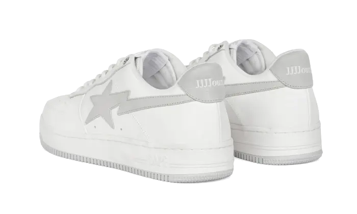 De A Bathing Ape Bape Sta JJJJound is een unieke samenwerking tussen twee iconische merken. Deze sneaker straalt eenvoud uit dankzij het minimalistische ontwerp met een wit leren bovenwerk en een lichtgrijze rubberen zool. Het kleine logo op de hiel zorgt voor subtiele branding.